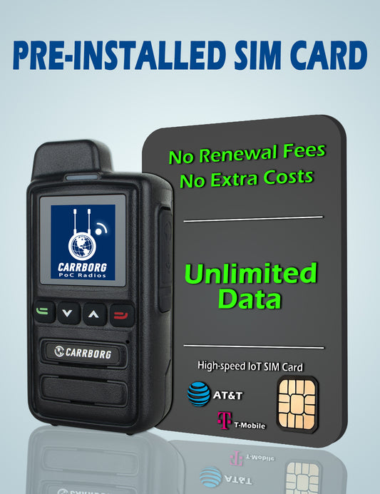 CARRBORG A63 Nationwide Lifetime Free LTE Walkie Talkies Unlimited Range 4G Two Way Radios Long Range Global POC with SIM Cards