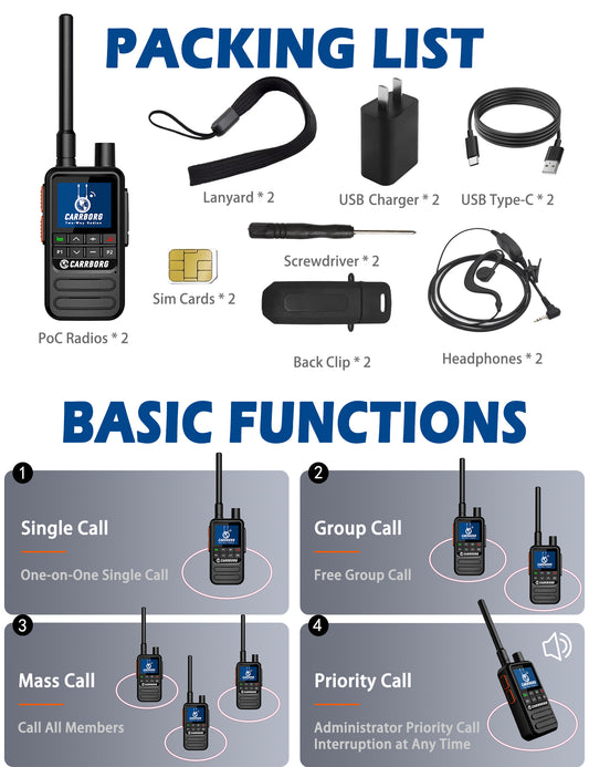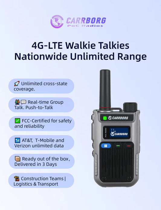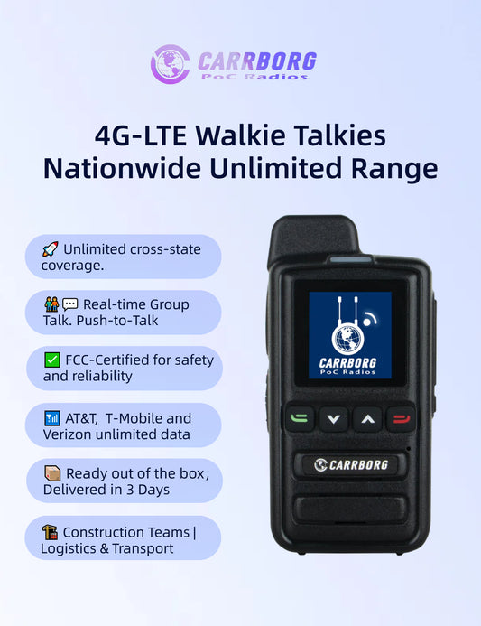 CARRBORG S959 4G Long Range Walkie Talkie | Dual Mode PTT Two-Way Radio | Nationwide & Global Coverage with SIM Card
