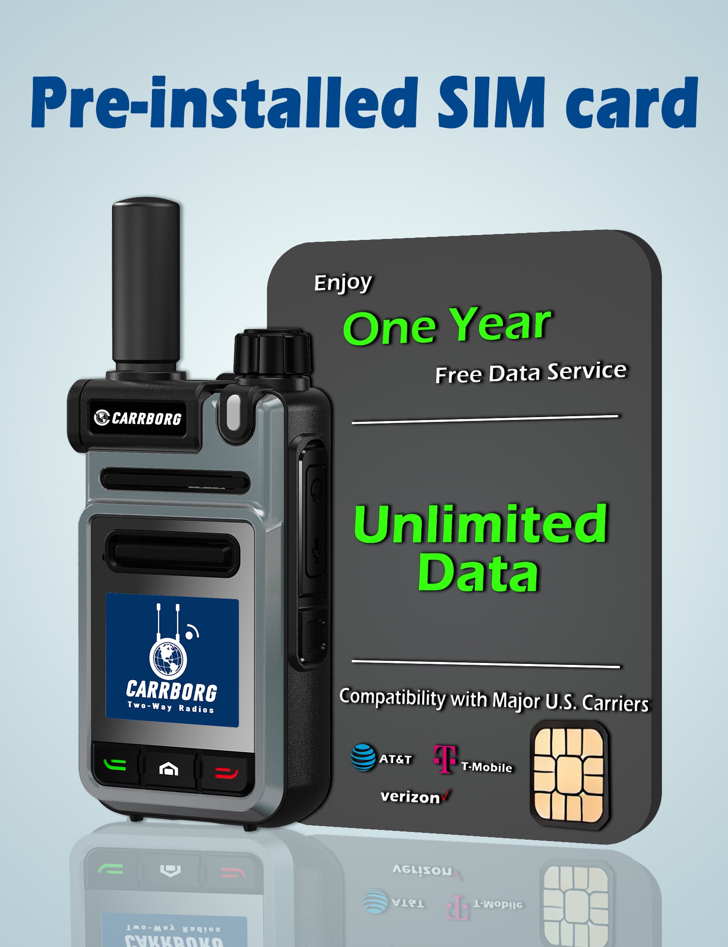 Walkie-talkie CARRBORG V1 4G de alcance ilimitado a nivel nacional