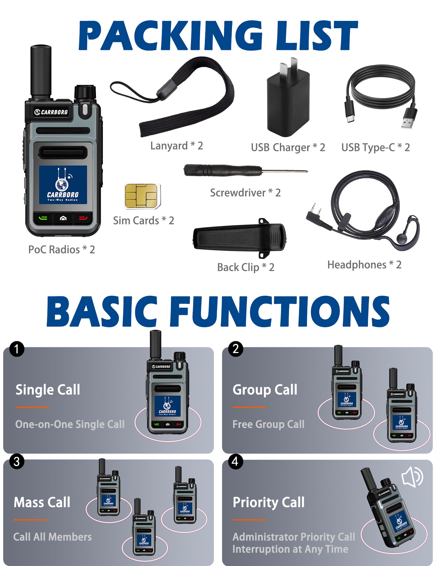 [Garantía de compra]: En CARRBORG, ofrecemos a nuestros clientes respuestas rápidas y un servicio posventa satisfactorio. No dude en contactarnos si tiene algún problema con nuestra radio POC.