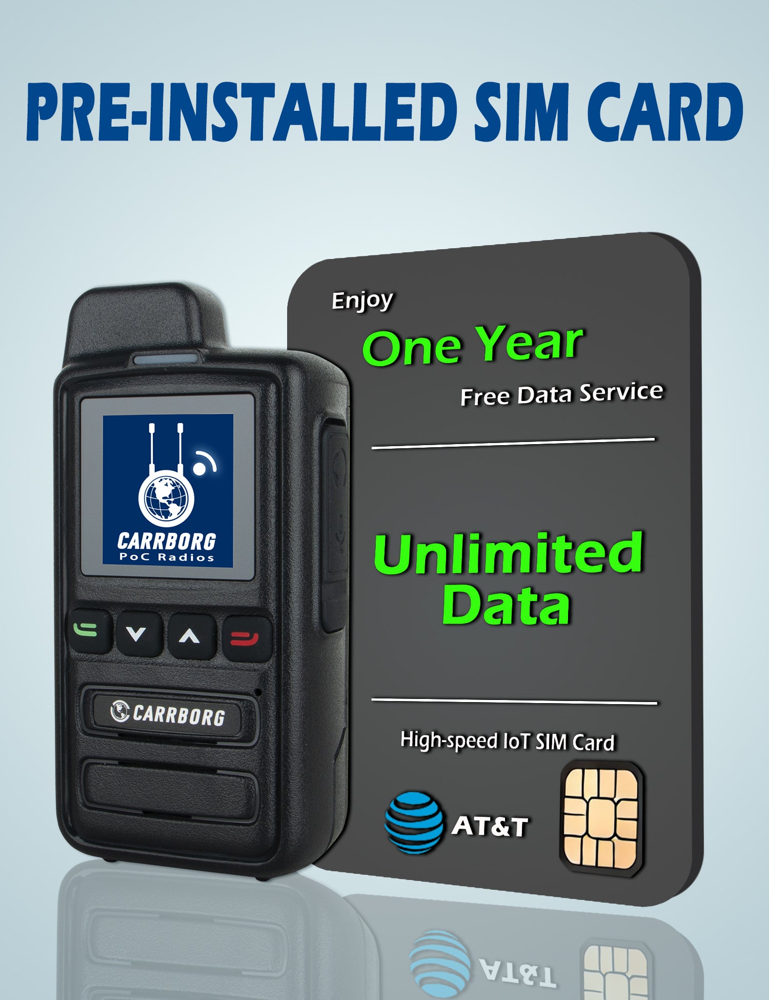 [No Monthly Fees - Ever]: Each device includes an (AT&T, T-Mobile,Verizon) SIM card with one years of free data service, unlimited data, restricted to use on this device only, renewal through us is only $15 per year.If you need to travel to other countries such as Mexico, Canada, etc., please contact us and we will activate the data service of the local operator for you free of charge.