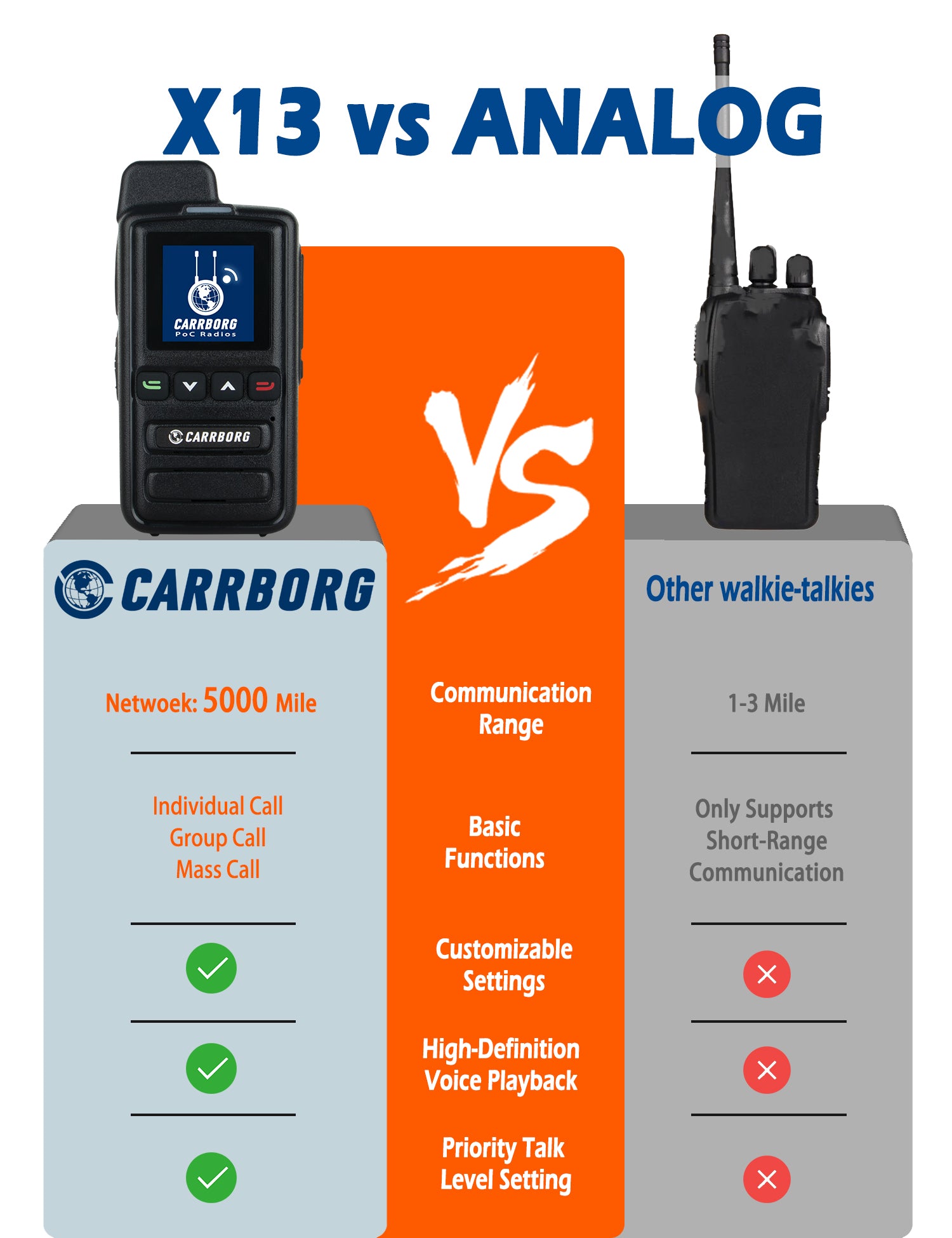 CARRBORG X13 4G Long Range Walkie Talkie | PTT Two-Way Radio | Nationwide & Global Coverage with SIM Card
